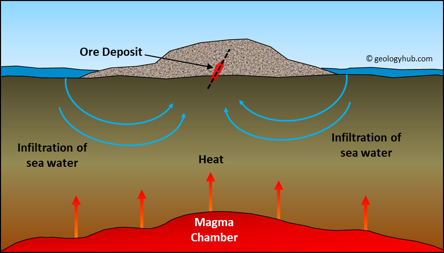 Formed when hot, mineral-rich fluids cool and precipitate crystals.